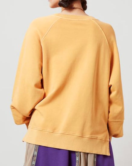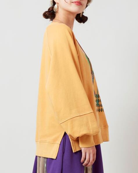 古着のような加工感の、裏起毛素材の袖ボリュームトレーナー。