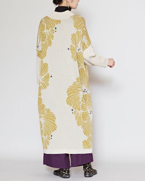 大胆に描かれた銀杏柄が目を惹くニットのロングワンピース。