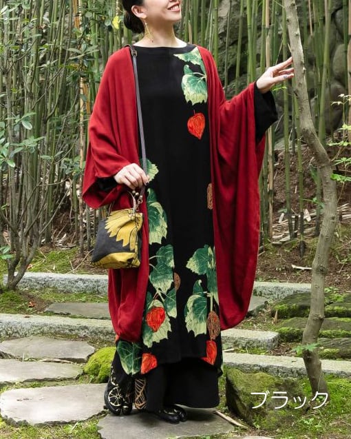 ほおずきの柄を大胆に描いたワンピースと羽織のセットです。