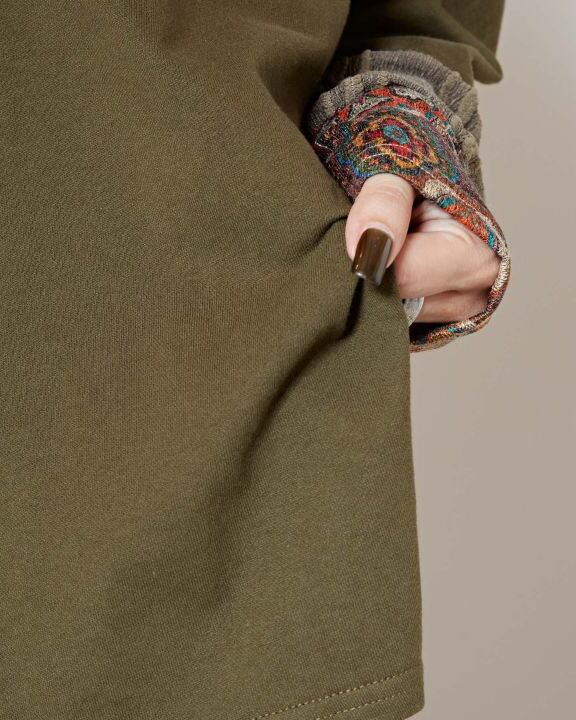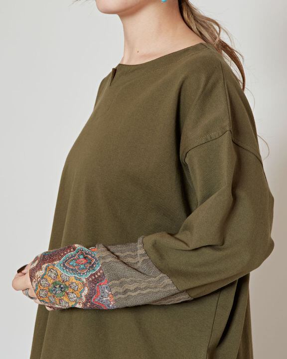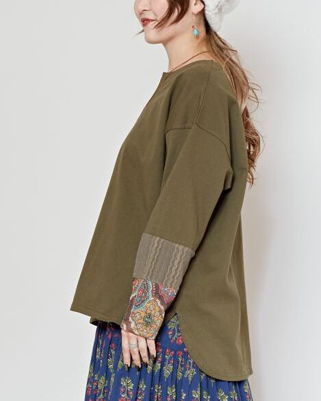 袖口から切り替わるヴィンテージ感のある柄が独特で目を惹き付けます。